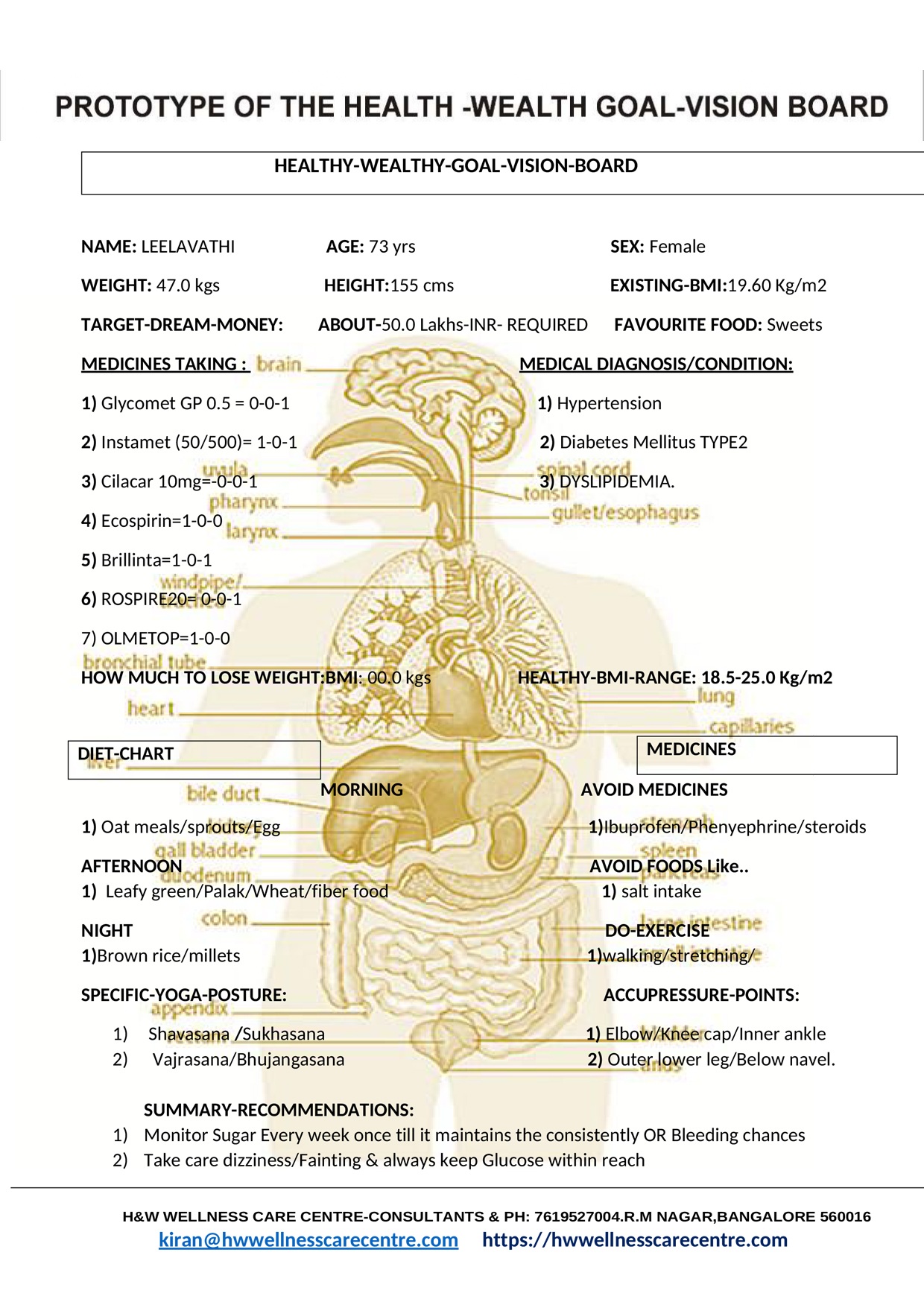 - We Suggest you Specific Yoga & Accupressure points & Medicine-Food Interactions.